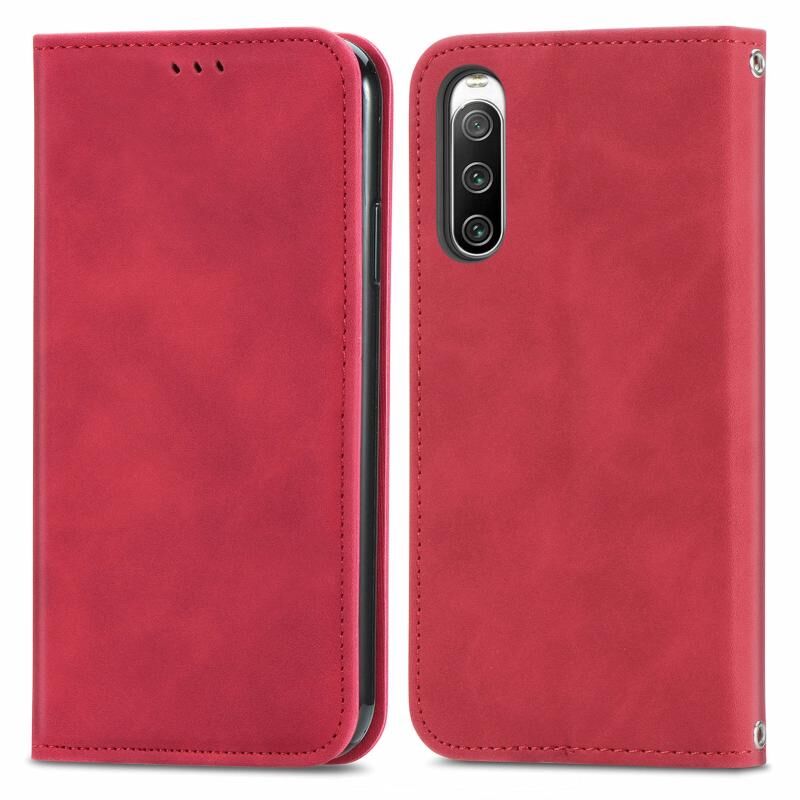 Για Sony Xperia 10 V Retro δέρμα αίσθηση μαγνητική Flip δέρμα τηλέφωνο υπόθεση (κόκκινο)