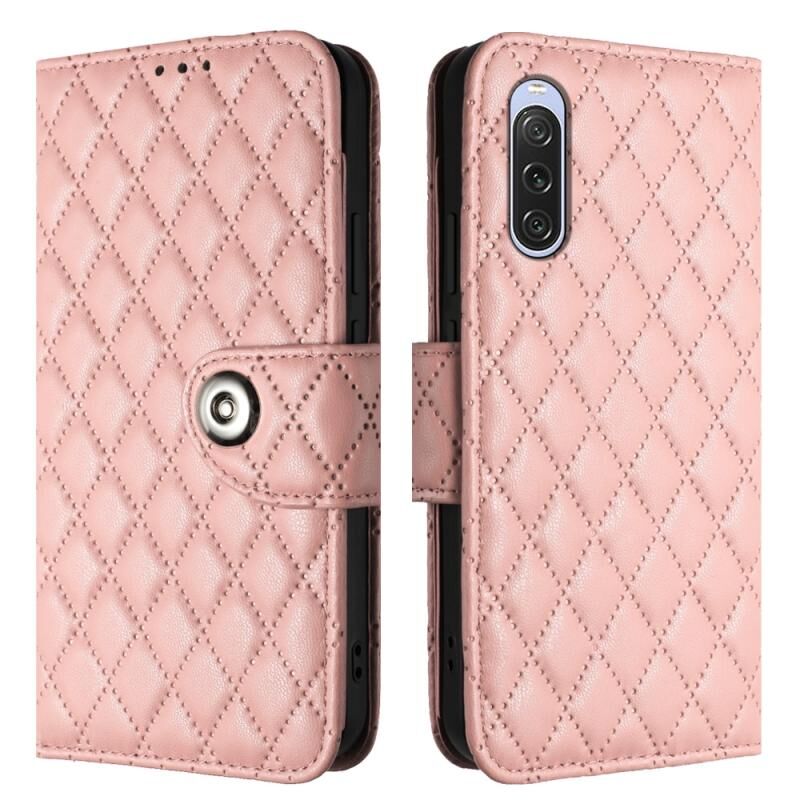 Για Sony Xperia 10 V Rhombic Texture Flip δερμάτινη θήκη τηλεφώνου με κορδόνι (ροζ κοραλλί)