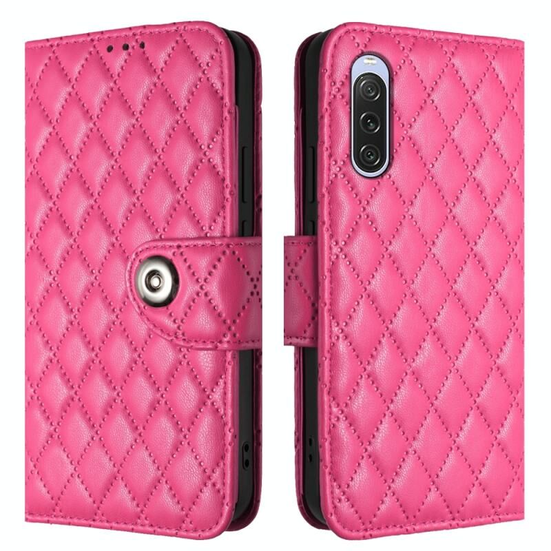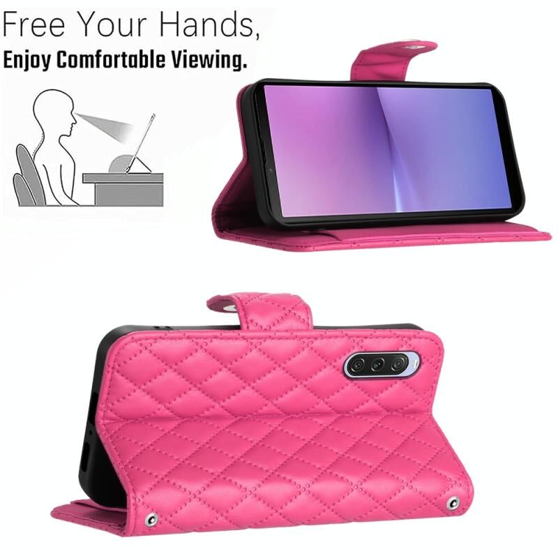 Για το Sony Xperia 10 V Rhombic Texture Flip δερμάτινη θήκη τηλεφώνου με κορδόνι (Rose Red)