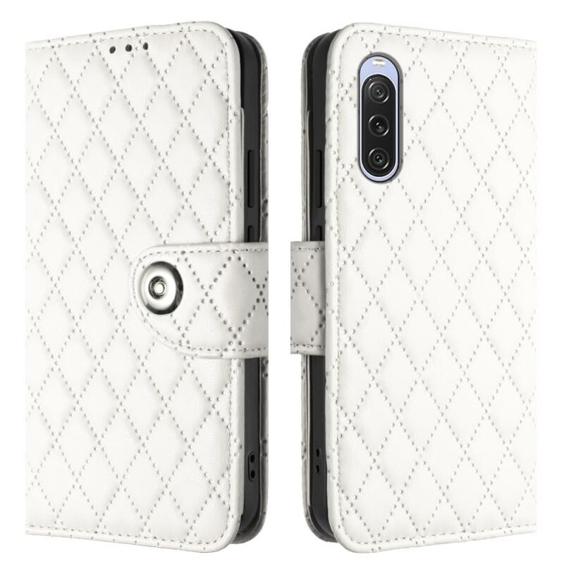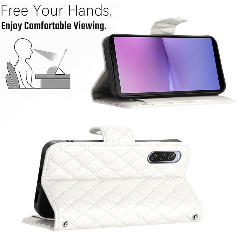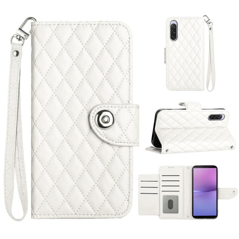 Για Sony Xperia 10 V Rhombic Texture Flip δερμάτινη θήκη τηλεφώνου με κορδόνι (λευκό)