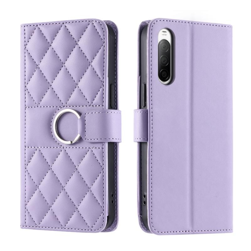 For Sony Xperia 10 V Ring Buckle Rhombic Leather Phone Case(Purple)