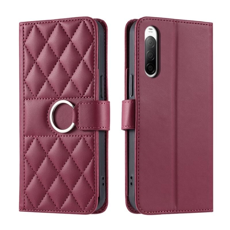For Sony Xperia 10 V Ring Buckle Rhombic Leather Phone Case(Red)