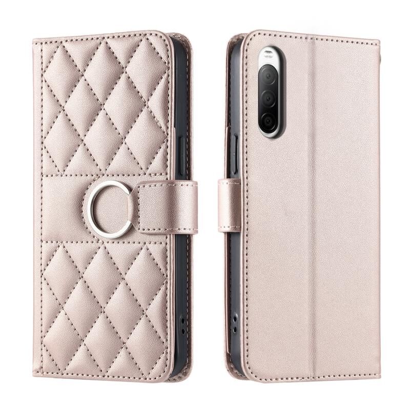 For Sony Xperia 10 V Ring Buckle Rhombic Leather Phone Case(Rose Gold)