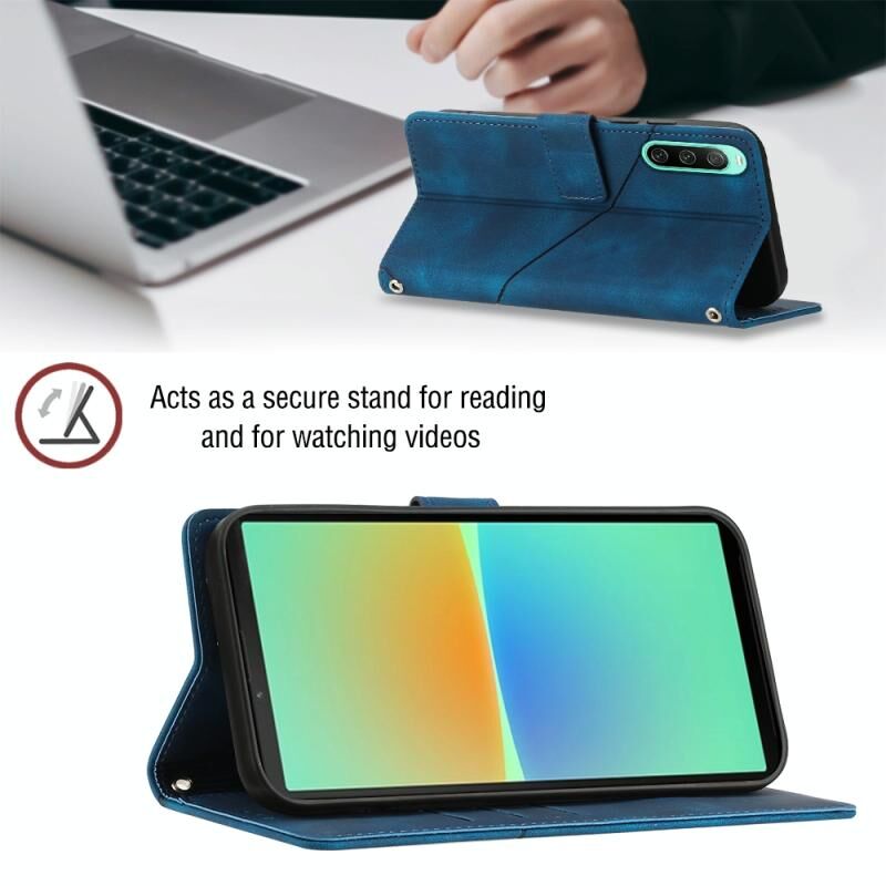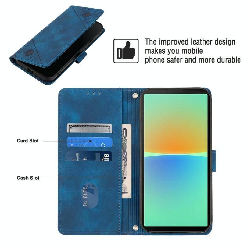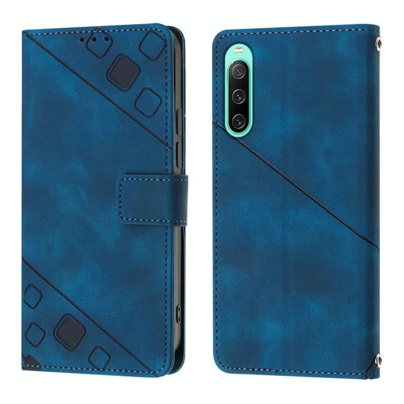 Για Sony Xperia 10 V Skin-feel ανάγλυφη δερμάτινη θήκη τηλεφώνου (μπλε)