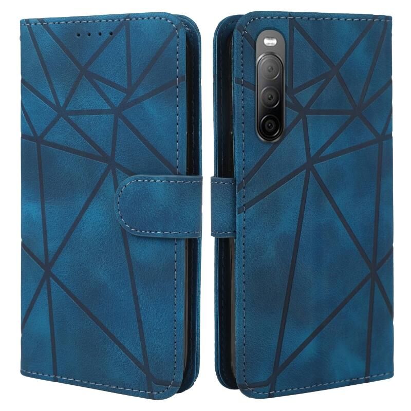 Για Sony Xperia 10 V Skin Feel γεωμετρικές γραμμές δερμάτινη θήκη τηλεφώνου (μπλε)