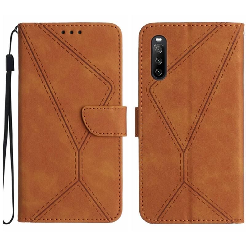 Για Sony Xperia 10 V ραφή ανάγλυφη δερμάτινη θήκη τηλεφώνου (καφέ)