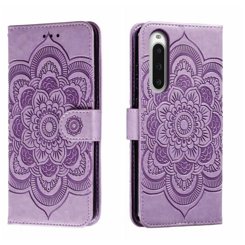 Για Sony Xperia 10 V Sun Mandala ανάγλυφο μοτίβο τηλέφωνο δερμάτινη θήκη (μωβ)