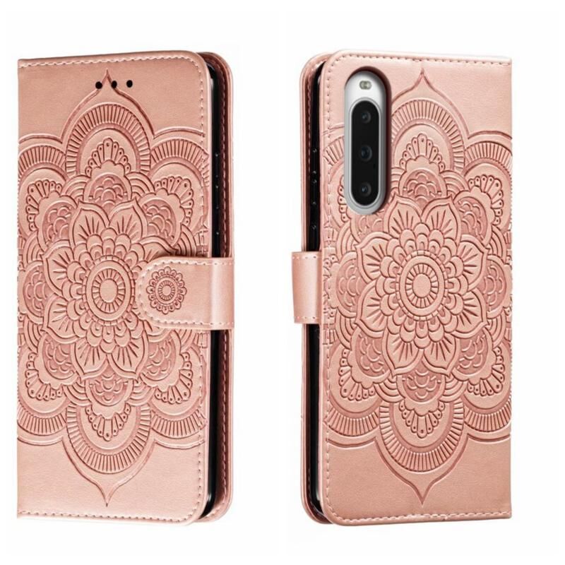 Για Sony Xperia 10 V Sun Mandala ανάγλυφο μοτίβο τηλέφωνο δερμάτινη θήκη (Rose Gold)