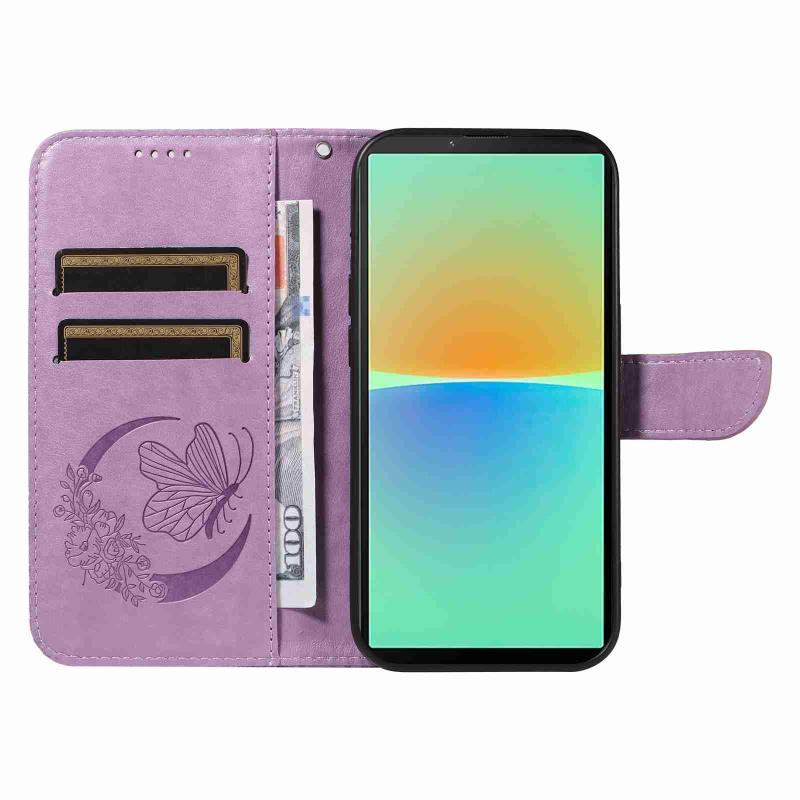 For Sony Xperia 10 V Swallowtail Butterfly Embossed Leather Phone Case(Purple)