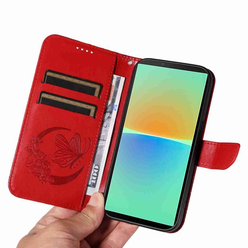 Θήκη τηλεφώνου από δέρμα με ανάγλυφο σχέδιο πεταλούδας Swallowtail για Sony Xperia 10 V (Μπλε)