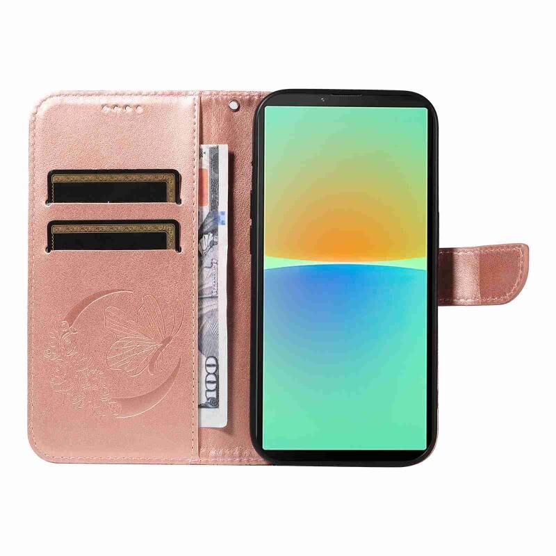 Θήκη τηλεφώνου από δέρμα με ανάγλυφο σχέδιο πεταλούδας Swallowtail για Sony Xperia 10 V (Μπλε)