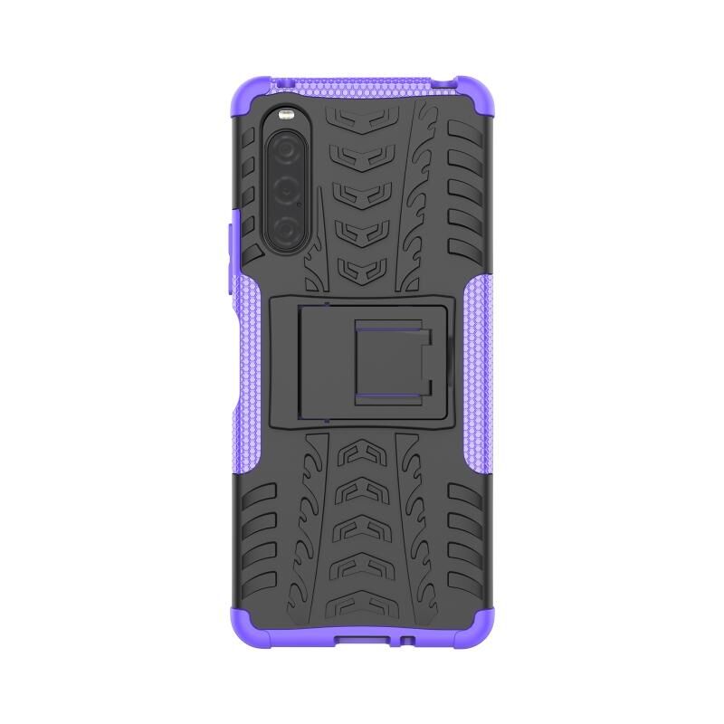 Για Sony Xperia 10 V Tire Υφή TPU + PC τηλέφωνο υπόθεση με θήκη (μωβ)