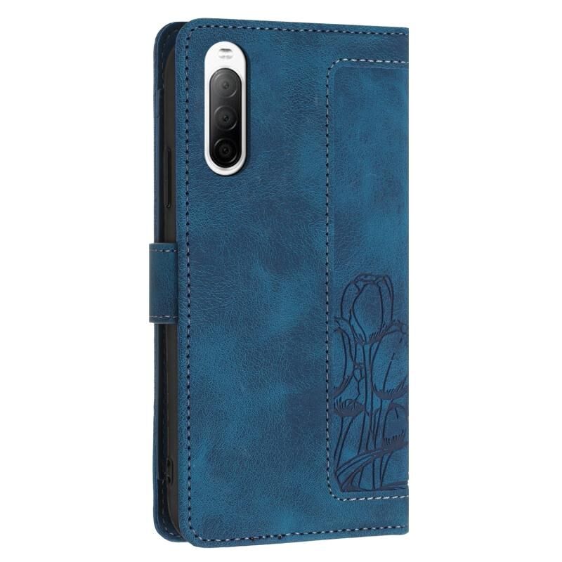 Θήκη τηλεφώνου από δέρμα με ανάγλυφα τουλίπες για Sony Xperia 10 V με κορδόνι (Ροζ)