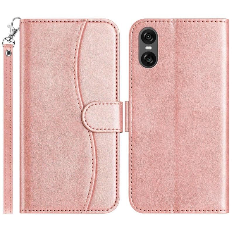 For Sony Xperia 10 VI 2024 Dual-Folded S-shape Leather Phone Case(Rose Gold)