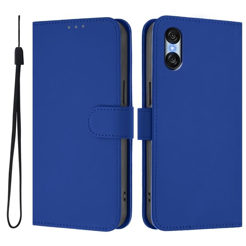 For Sony Xperia 10 VI 2024 Skin Feel Solid Color Leather Phone Case with Lanyard(Dark Blue)