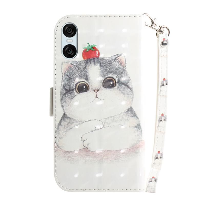 Θήκη τηλεφώνου δέρματινη, οριζόντια, αναδιπλούμενη, με τρισδιάστατο έγχρωμο σχέδιο για Sony Xperia 10 VI (Χαριτωμένη Γάτα)