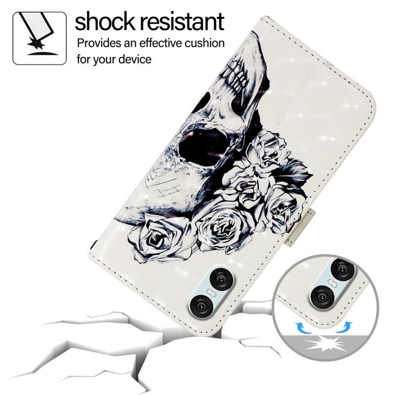 Θήκη τηλεφώνου από δέρμα με οριζόντια αναδίπλωση και τρισδιάστατη ζωγραφική για Sony Xperia 10 VI (Κρανίο)