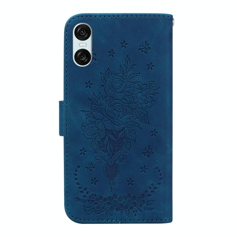 Για Sony Xperia 10 VI Πεταλούδα Rose ανάγλυφη δερμάτινη θήκη τηλεφώνου (μπλε)