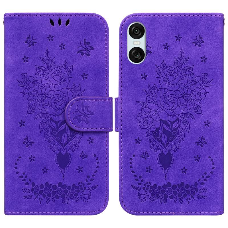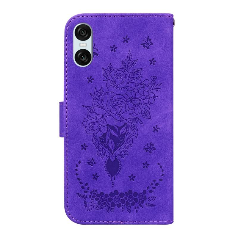 Για Sony Xperia 10 VI Πεταλούδα Rose ανάγλυφη δερμάτινη θήκη τηλεφώνου (μωβ)