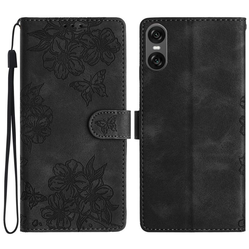 Θήκη τηλεφώνου για Sony Xperia 10 VI Cherry Blossom Butterfly Skin Feel Embossed PU (Μπλε)