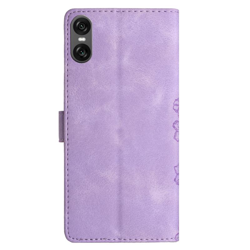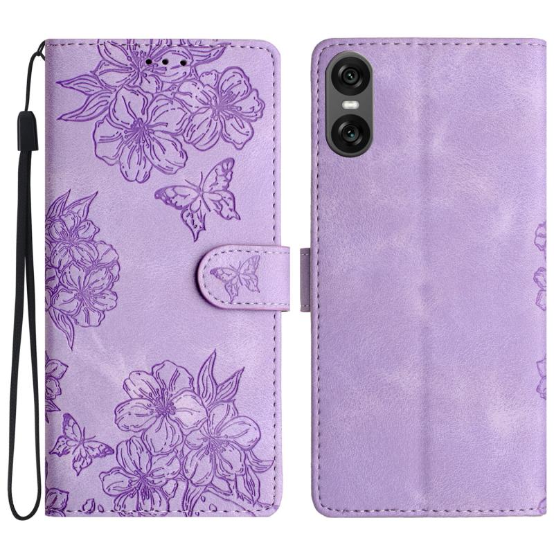 For Sony Xperia 10 VI Cherry Blossom Butterfly Skin Feel Embossed PU Phone Case(Purple)