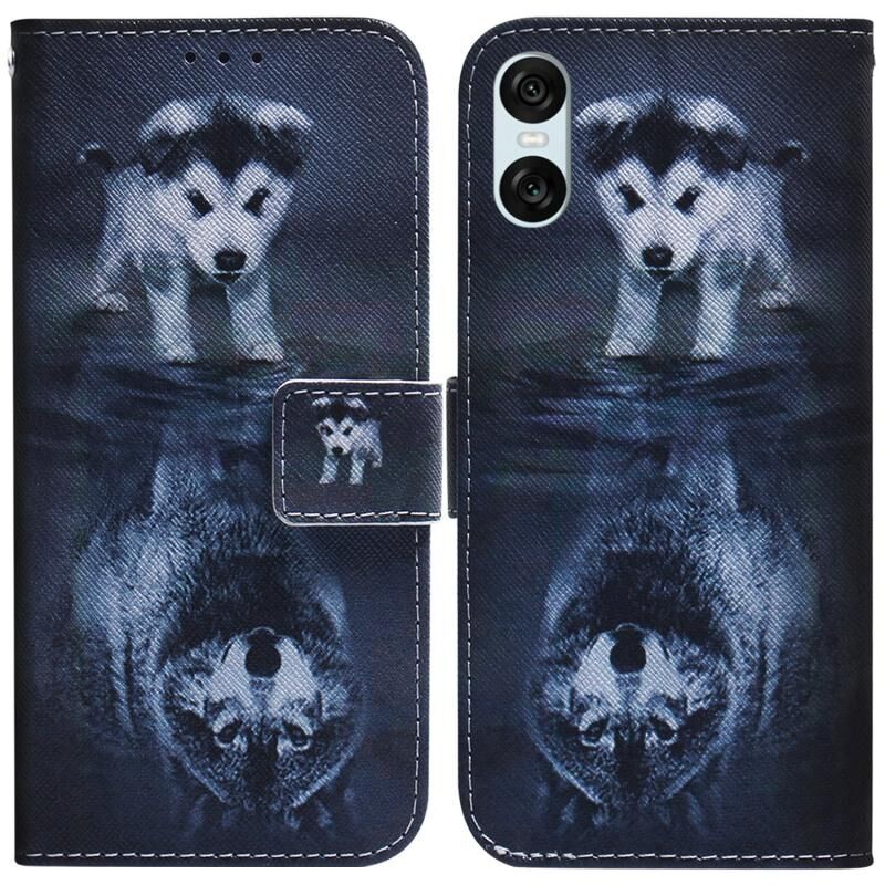 Θήκη τηλεφώνου από δέρμα με σχέδιο (Λύκος και Σκύλος) για Sony Xperia 10 VI