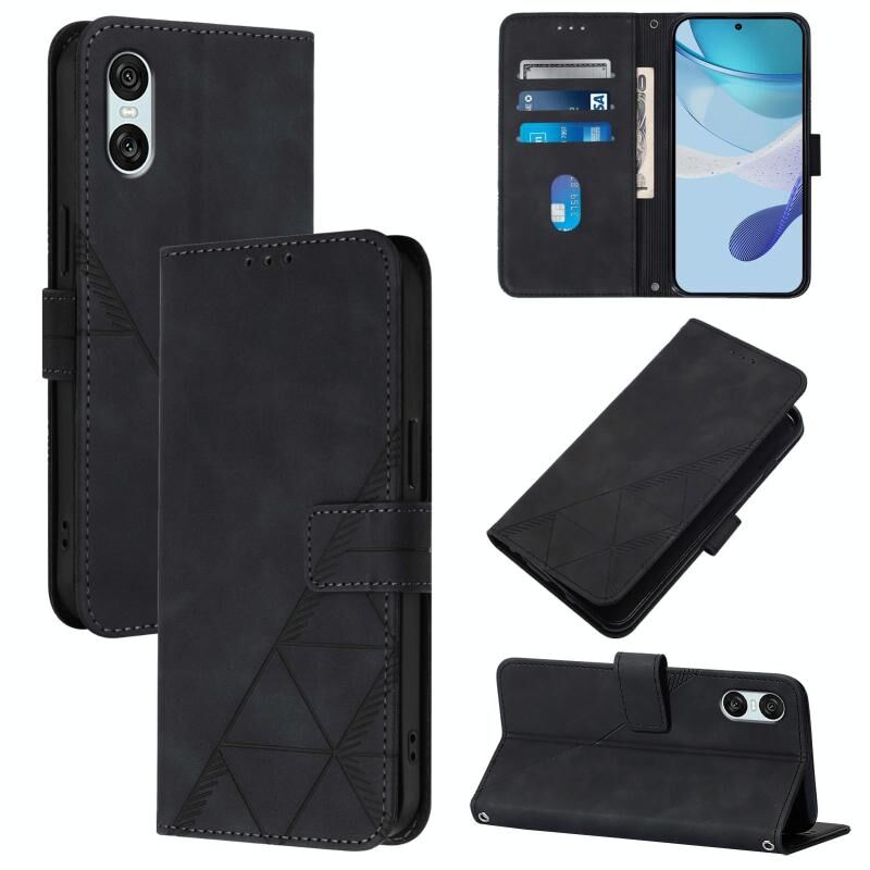 Θήκη τηλεφώνου δερμάτινη, τύπου flip, με ανάγλυφο 3D για Sony Xperia 10 VI, χιαστί (Καφέ)