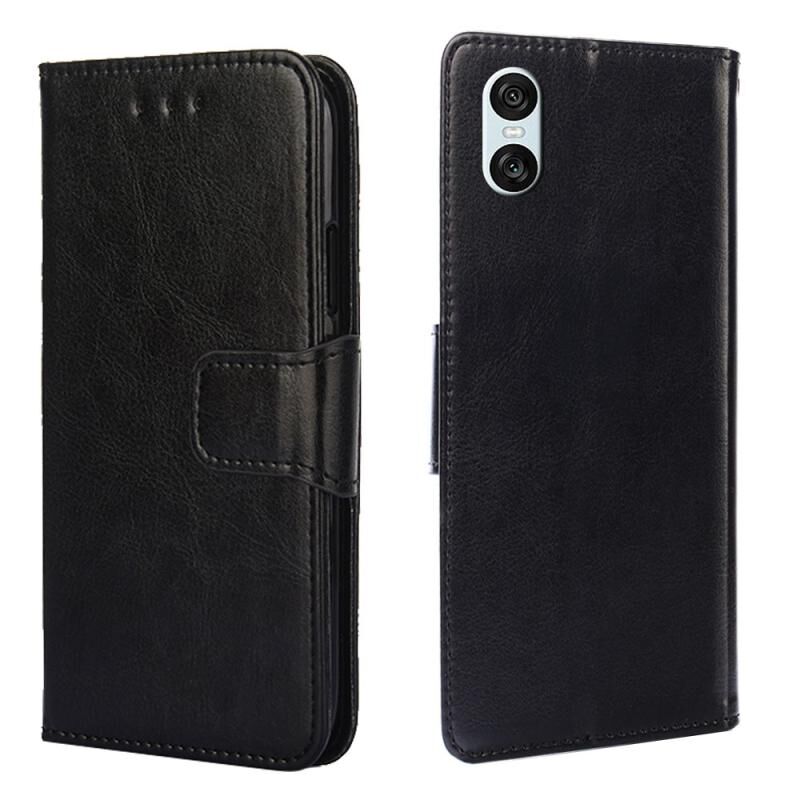 Για Sony Xperia 10 VI Θήκη τηλεφώνου από δέρμα με κρυστάλλινη υφή (Μαύρο)