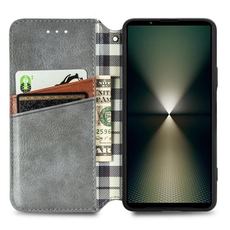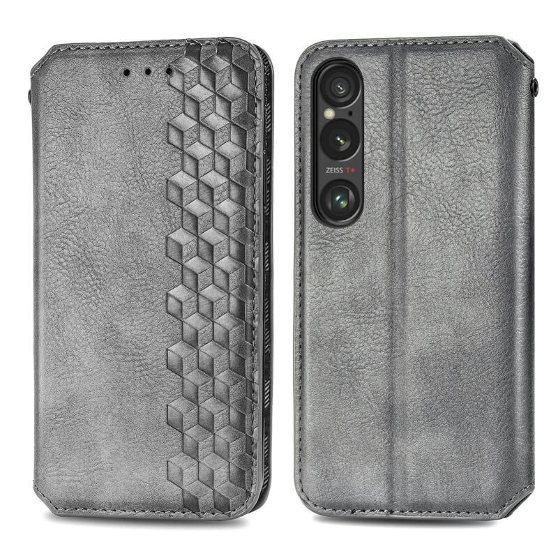 Για Sony Xperia 10 VI Cubic Grid Pressed μαγνητική δερμάτινη θήκη τηλεφώνου (γκρι)