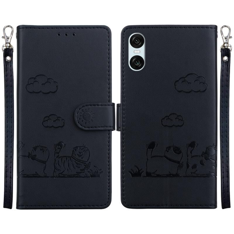 Θήκη τηλεφώνου από δέρμα με τεχνολογία RFID για Sony Xperia 10 VI, με χαριτωμένες γάτες (Χρυσό Ρόδι)