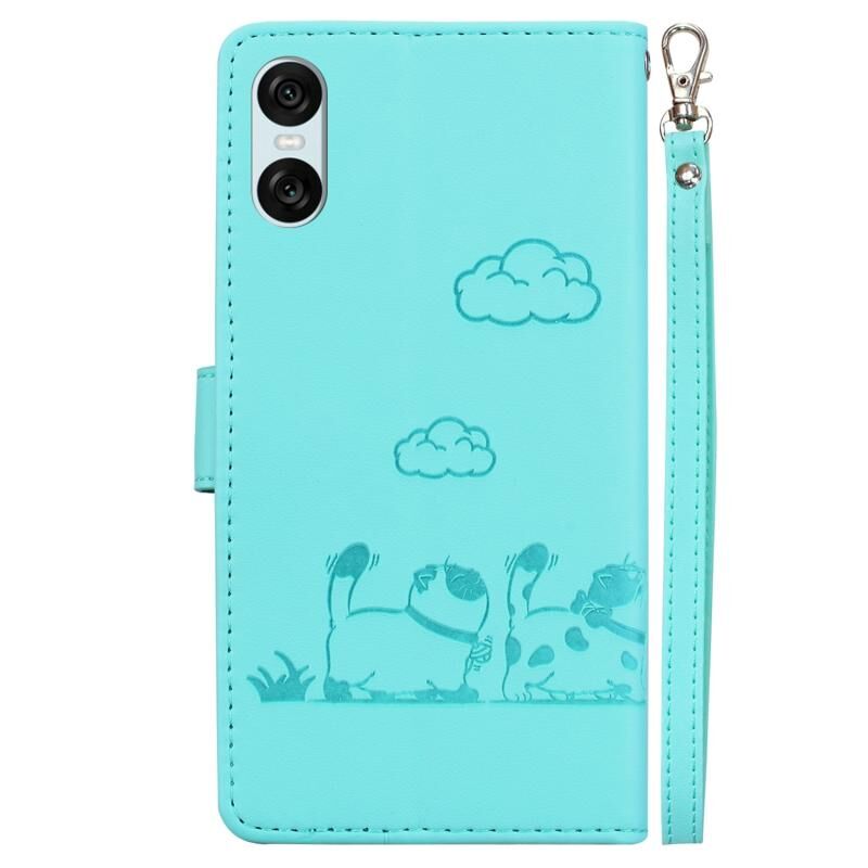 Θήκη τηλεφώνου από δέρμα με τεχνολογία RFID για Sony Xperia 10 VI, με χαριτωμένες γάτες (Χρυσό Ρόδι)