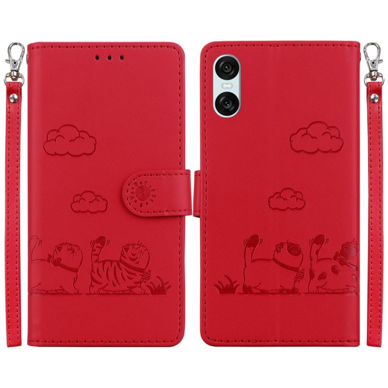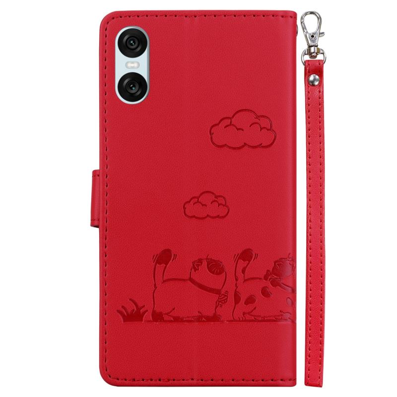 For Sony Xperia 10 VI Cute Cats RFID Leather Phone Case(Red)