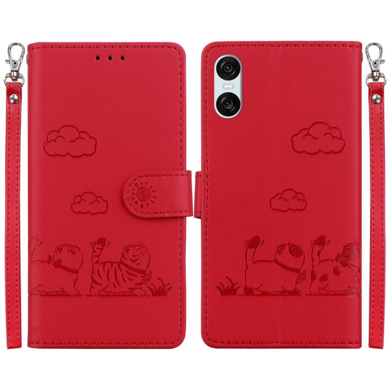 Θήκη τηλεφώνου από δέρμα με τεχνολογία RFID για Sony Xperia 10 VI, με χαριτωμένες γάτες (Χρυσό Ρόδι)