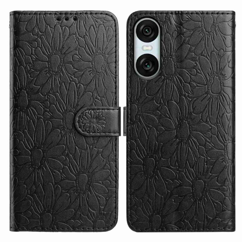 For Sony Xperia 10 VI Daisy Embossed Leather Phone Case(Black)