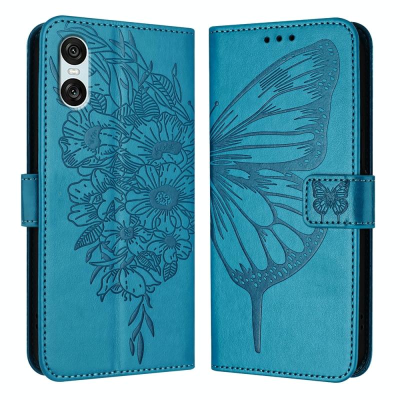 For Sony Xperia 10 VI Embossed Butterfly Leather Phone Case(Blue)