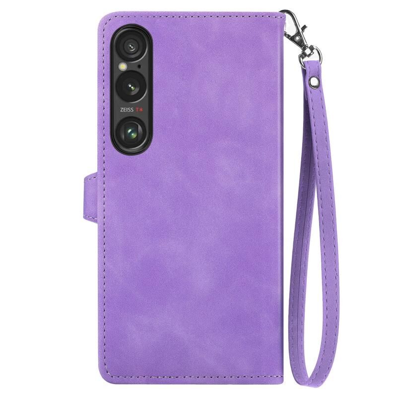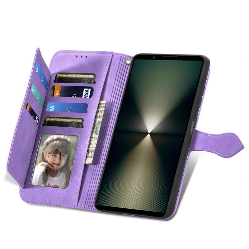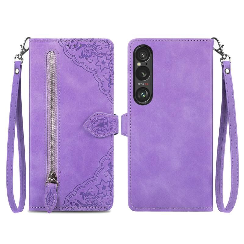 Για Sony Xperia 10 VI ανάγλυφο λουλούδι φερμουάρ δερμάτινη θήκη τηλεφώνου (μωβ)