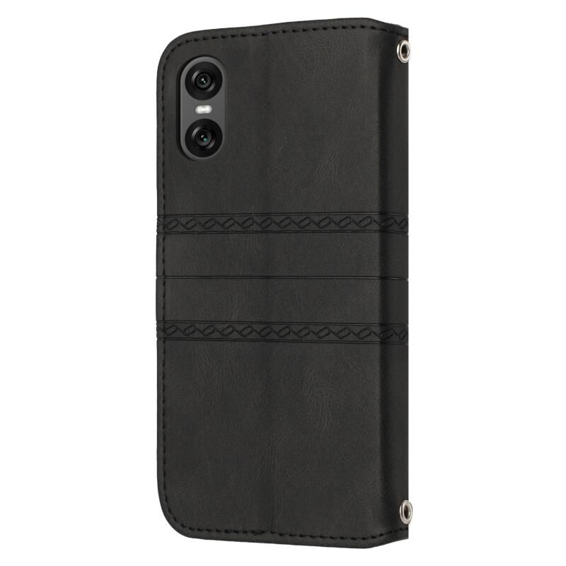 Για Sony Xperia 10 VI ανάγλυφο ρίγες δέρμα δέρμα αίσθηση τηλέφωνο υπόθεση (μαύρο)