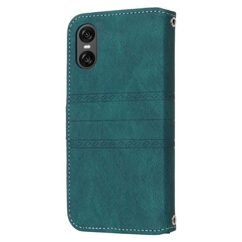 Για Sony Xperia 10 VI ανάγλυφο ρίγες δέρμα δέρμα αίσθηση υπόθεση τηλεφώνου (σκούρο πράσινο)