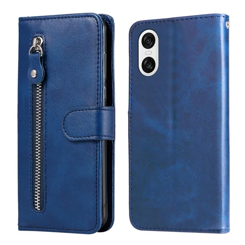 Για Sony Xperia 10 VI Μόδα μοσχάρι υφή φερμουάρ δερμάτινη θήκη τηλεφώνου (μπλε)