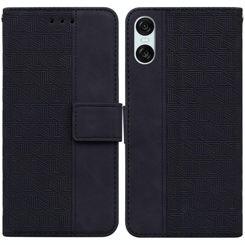 Για Sony Xperia 10 VI Γεωμετρική ανάγλυφη δερμάτινη θήκη τηλεφώνου (Μαύρο)