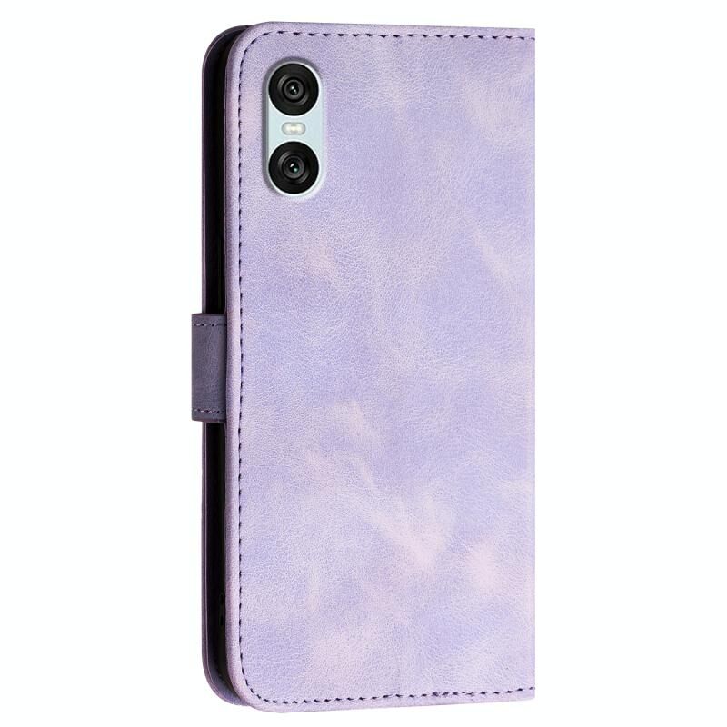 Θήκη τηλεφώνου τύπου flip από δέρμα με ανάγλυφο σχέδιο πεταλούδας σε πλέγμα για Sony Xperia 10 VI με κορδόνι (Σκούρο Μπλε)