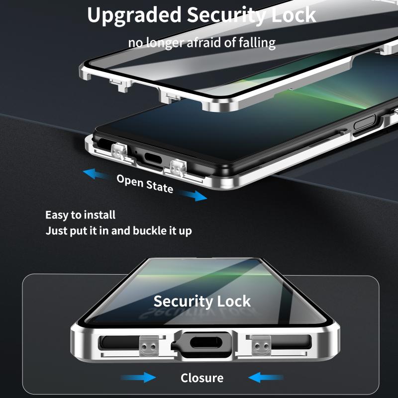 For Sony Xperia 10 VI HD Magnetic Metal Tempered Glass Phone Case(Silver)