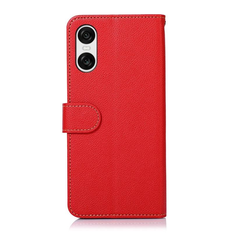 Θήκη κινητού τηλεφώνου Sony Xperia 10 VI KHAZNEH από δέρμα με υφή λύτσι και προστασία RFID (Μαύρο)
