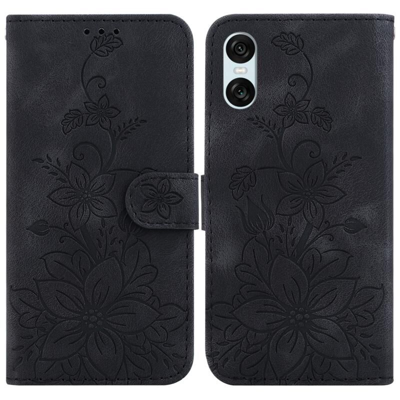 Για Sony Xperia 10 VI Lily ανάγλυφη δερμάτινη θήκη τηλεφώνου (Μαύρο)