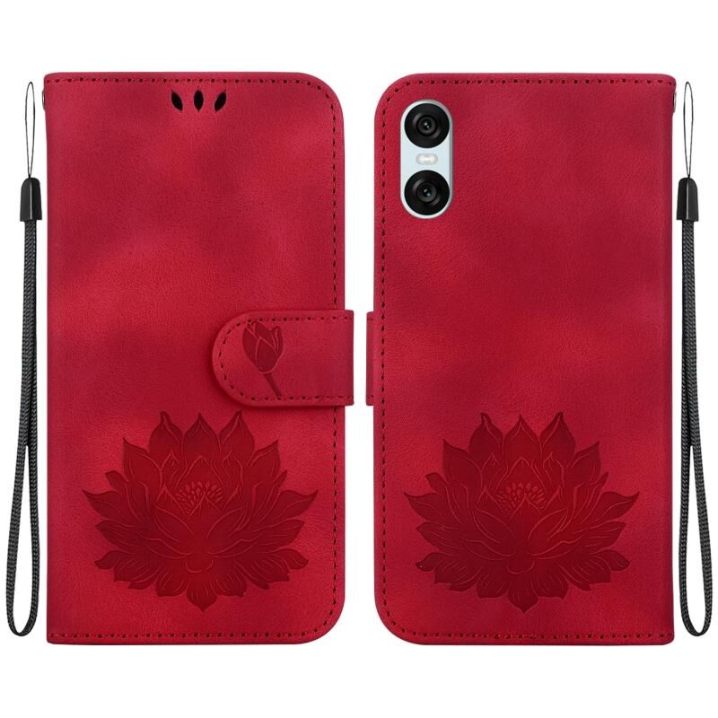 For Sony Xperia 10 VI Lotus Embossed Leather Phone Case(Red)