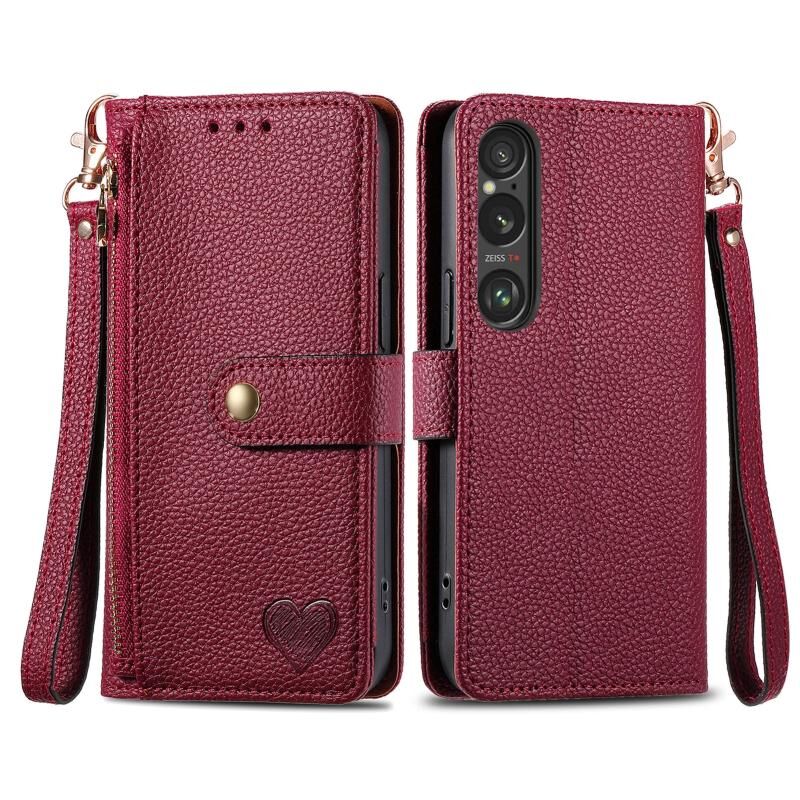 Για Sony Xperia 10 VI Love φερμουάρ Lanyard δερμάτινη θήκη τηλεφώνου (κόκκινο)
