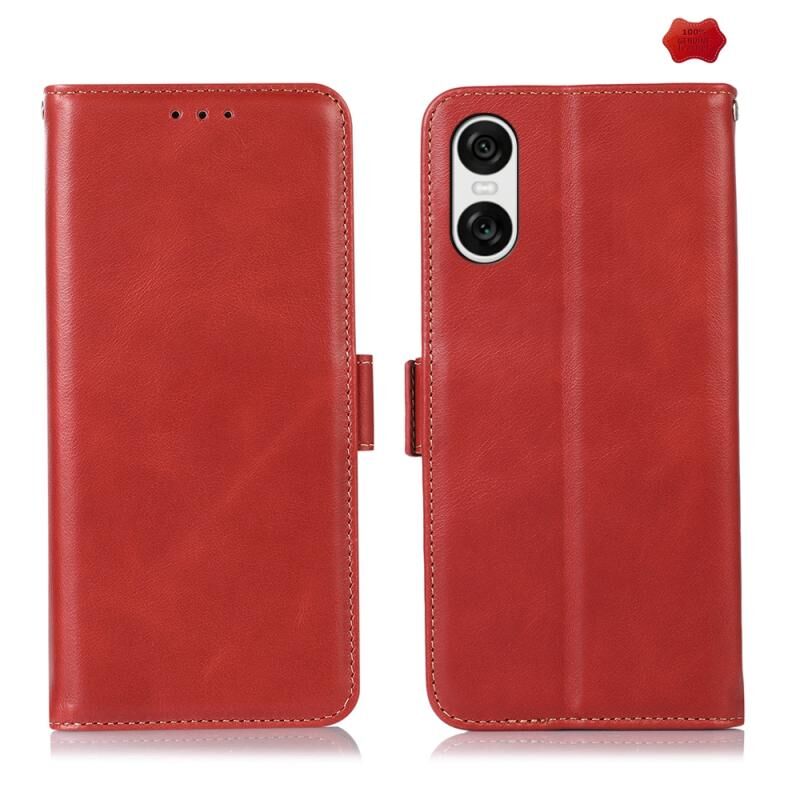 For Sony Xperia 10 VI Magnetic Crazy Horse Texture Genuine Leather RFID Phone Case(Red)
