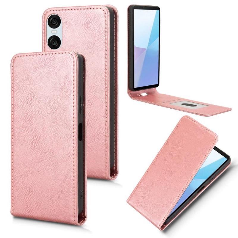 For Sony Xperia 10 VI Magnetic Vertical Flip Leather Phone Case(Rose Gold)