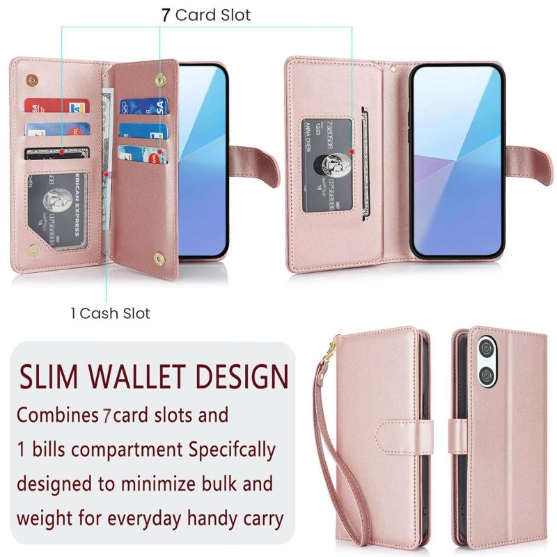 For Sony Xperia 10 VI Multi-Card Wallet RFID Leather Phone Case(Rose Gold)