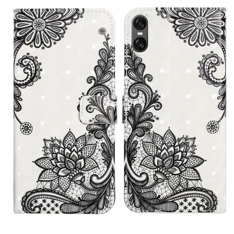 Θήκη τηλεφώνου δερμάτινη με ανάγλυφο σχέδιο λαδιού 3D για Sony Xperia 10 VI (Δαντέλα Λουλούδι)